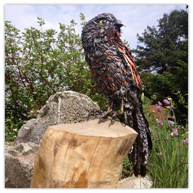 I’ll be perfectly honest: metal sculpture is a bit of an anomaly. I’ve had training in welding, but this art medium… it’s a complete fluke. I believe some of the best things in life come to us that way. For me, I believe that each piece I do is a story, something I’ve seen or witnessed, experienced first hand, or heard of in the news. To me, it’s quite similar to songwriting. Rather than putting pen to paper on what I have in my mind, I hammer it out in steel… country music gone Heavy Metal, so to speak!