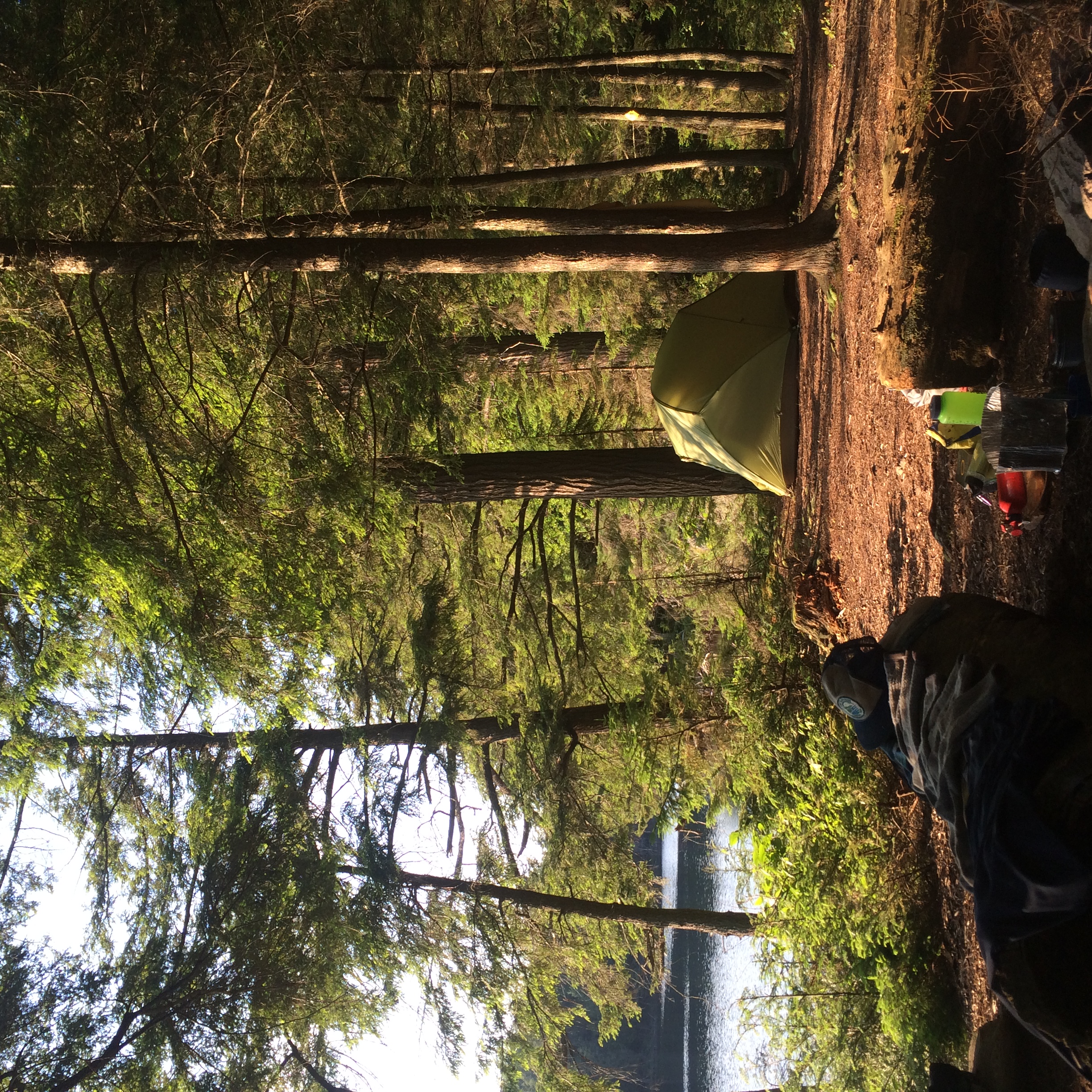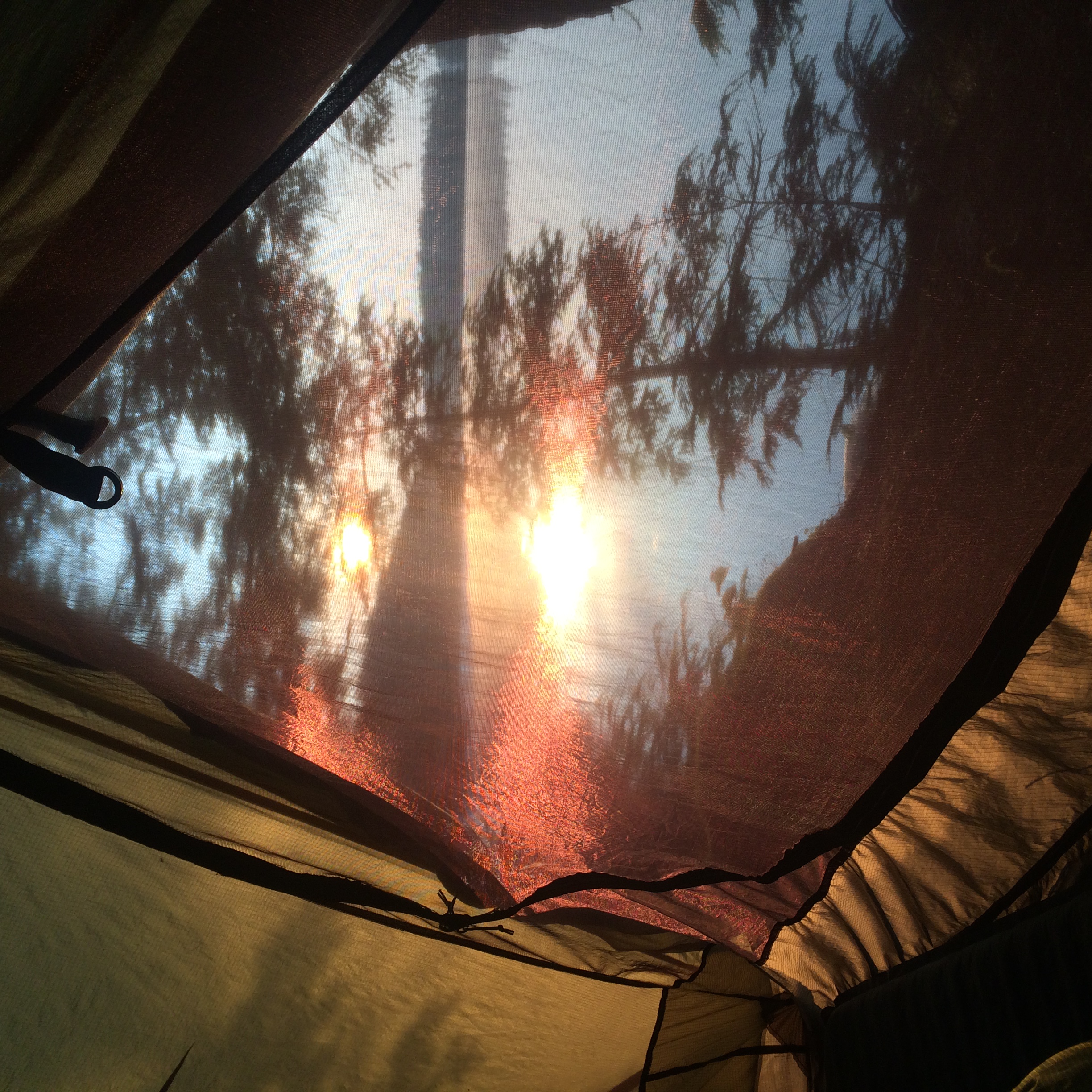 The woodpeckers woke me up just after the sun rose. I can’t tell you how beautiful the view from my tent was, so I’ll just show you.