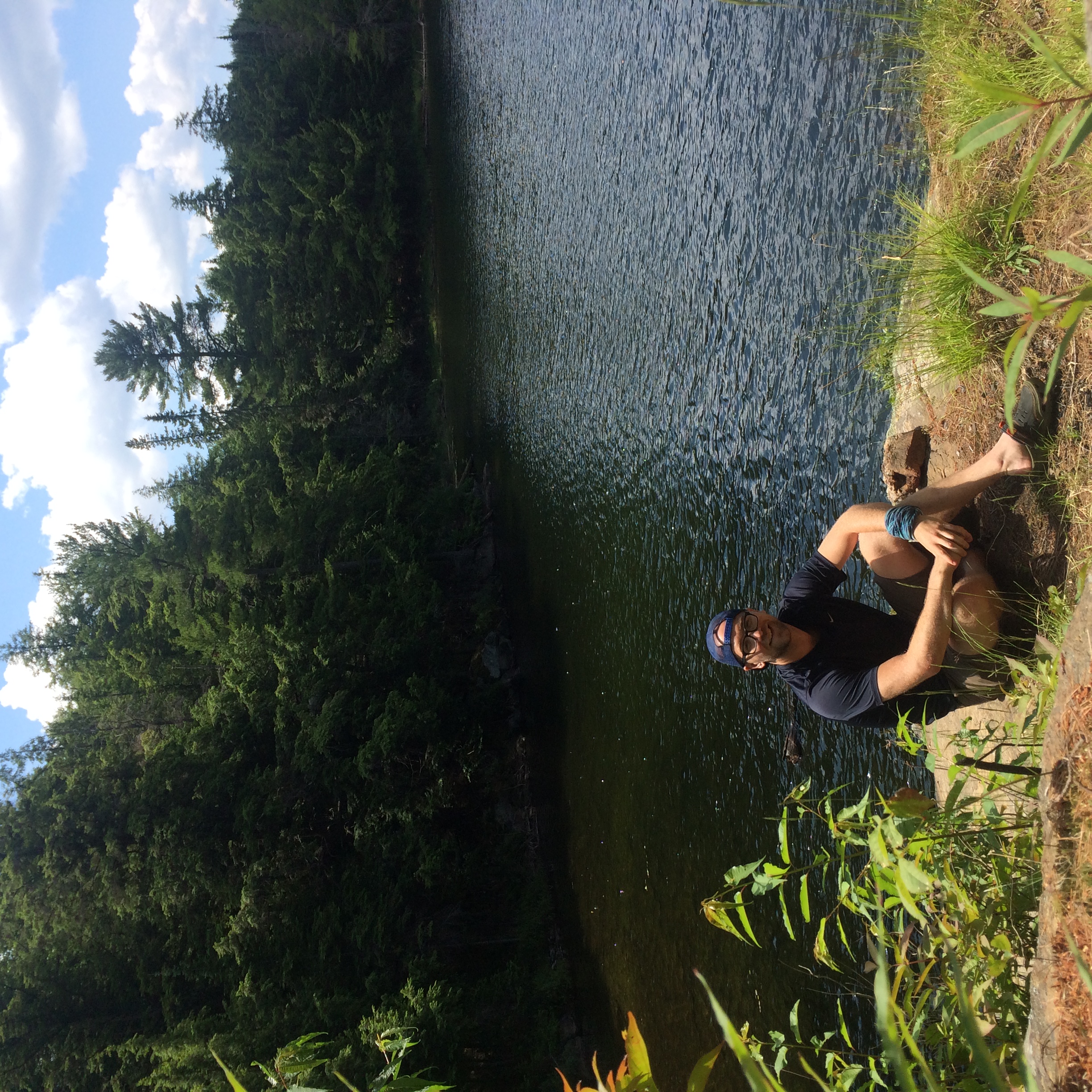 That little island—which probably has a name, but I’m going to call it Spruce Island—was a perfect destination. It gave me the chance for a good 150-meter swim and some warm, flat, shoreline rocks to catch the westerly sun while some enormous spruce trees towered over me.
